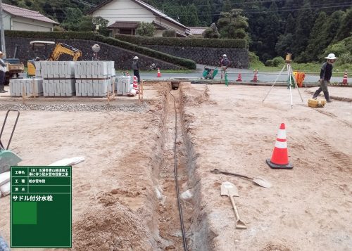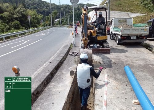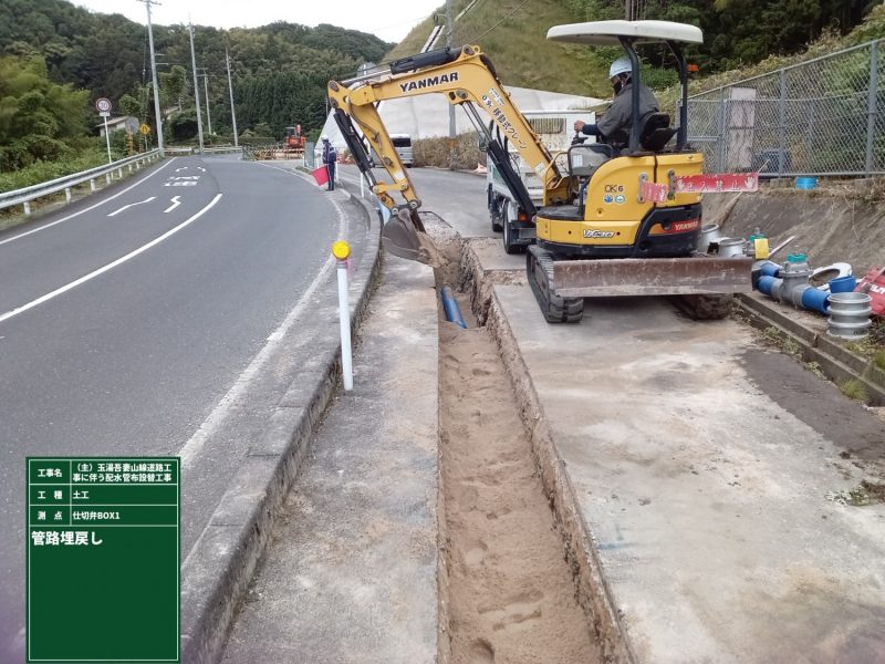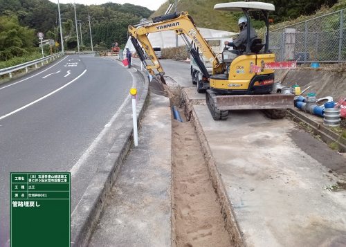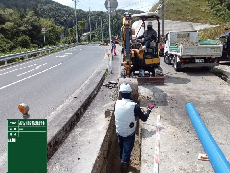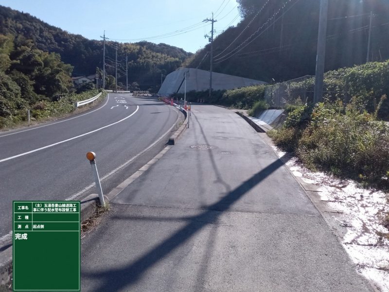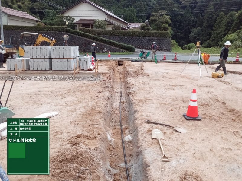 工事位置/松江市玉湯町 発注者/松江市上下水道局 工事期間/令和7年5月~令和7年10月 工事概要/配水管布設替工 HPPEφ150 L=438.9m 給水管切替 PPφ20 N=2箇所